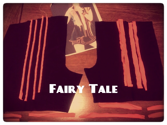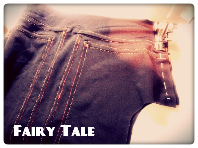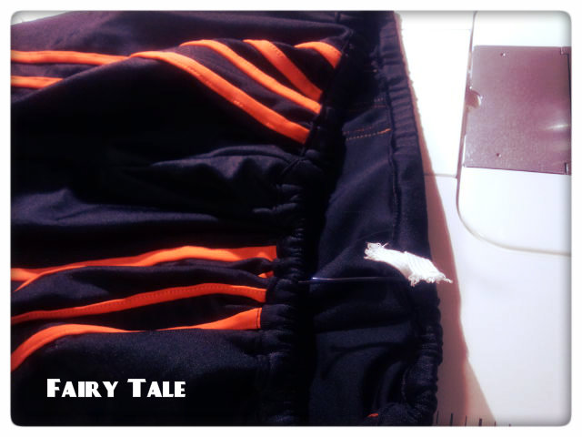 画面には映ってませんが、ウェストのゴムを通す時ように黒い布でベルト生地も用意します。