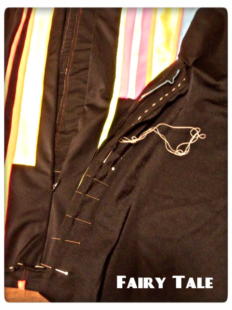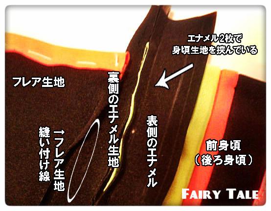 エナメル2枚でそれぞれの身頃を挟むようにしつけをしていきました。