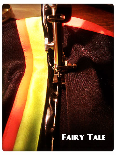 裾のDORの紐を縫い付け、その後、表側のエナメルにもしつけをし、ミシンをかけました。