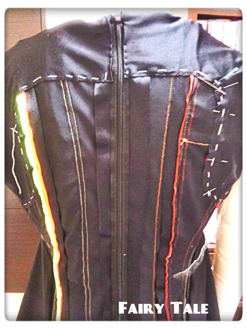 私は脇縫いをファスナーを付けた後に身返しを縫いつけはじめてしまったのですが、これをしてしまうと表に返せなくなり、首周り又は袖ぐりが手縫いになってしまいます。