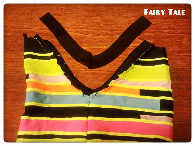 後ろも同様に、後ろ身頃のウェストラインと、後ろスカートのウェストラインを重ね縫い合わせます。