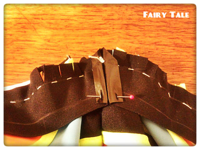 3)後ろ身頃の背中心の模様を合わせファスナーをつけます。