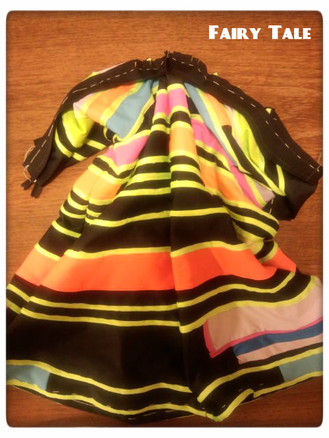 1)表身頃のウェストラインと、表スカートのウェストラインを重ね縫い合わせます。