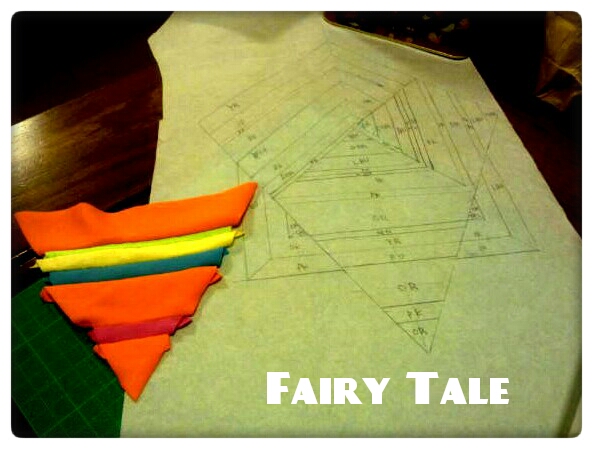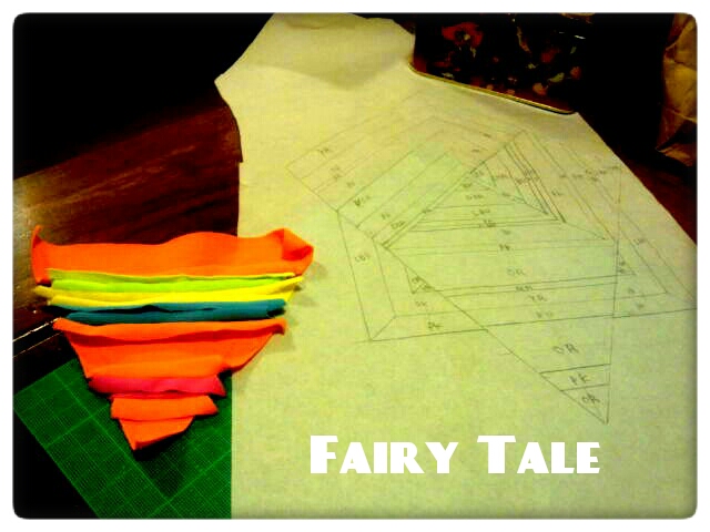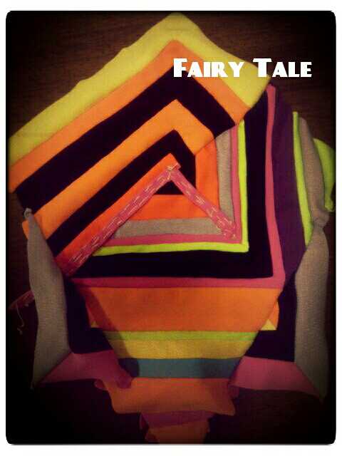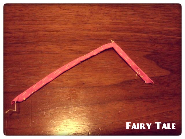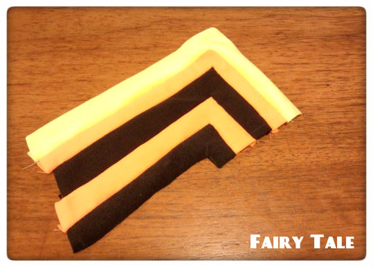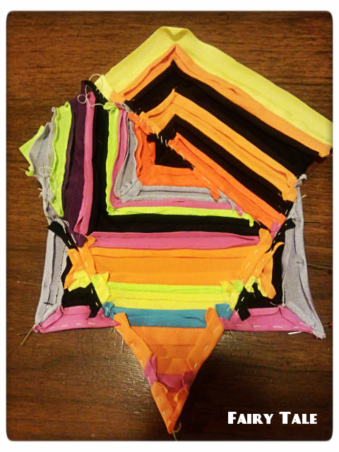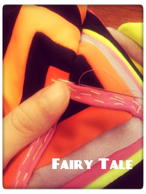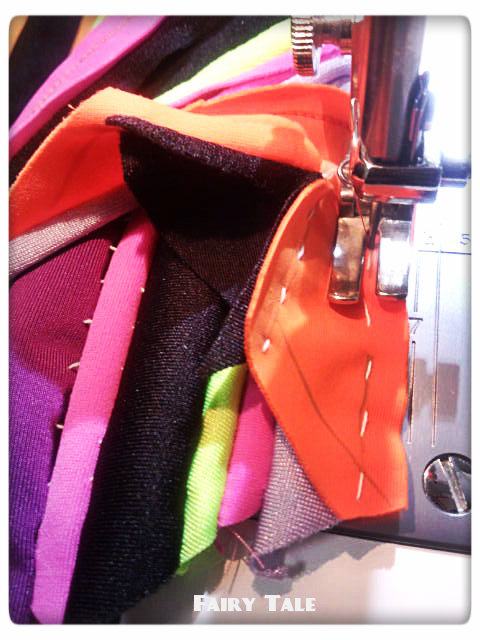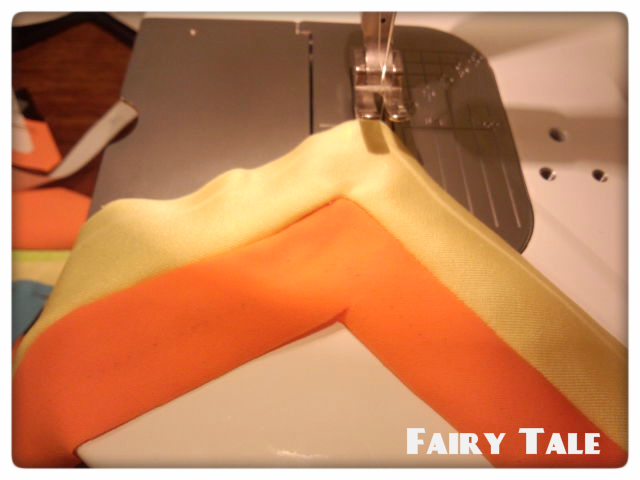 ピンクの紐生地は、左の黒い生地とオレンジの間に挿しこみ、