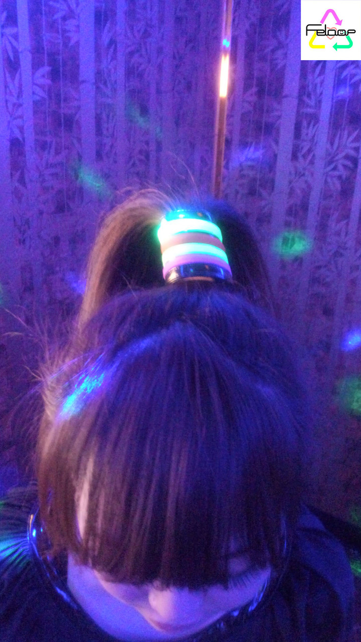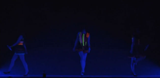 あーちゃん衣装のピンク生地は購入時、黄緑の生地のようにはブラックライトに反応してくれなかったので
